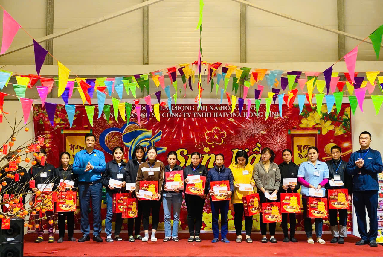 Sáng 18/01, Công đoàn Công ty TNHH Haivina Hồng Lĩnh tổ chức Chương trình “Tết sum vầy” trao quà Tết cho công nhân lao động có hoàn cảnh khó khăn và phối hợp công ty tổ chức cho công nhân lao động ăn Tết.