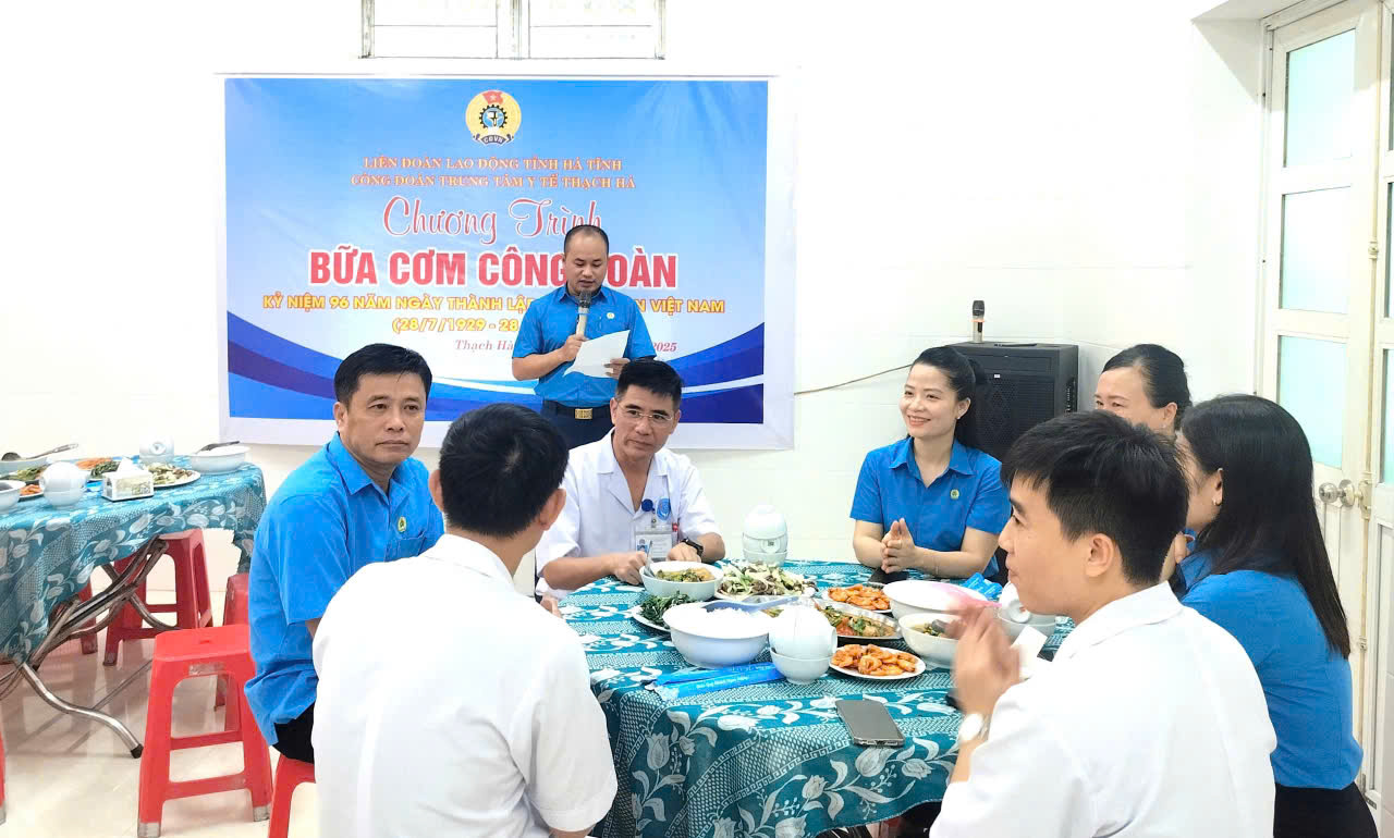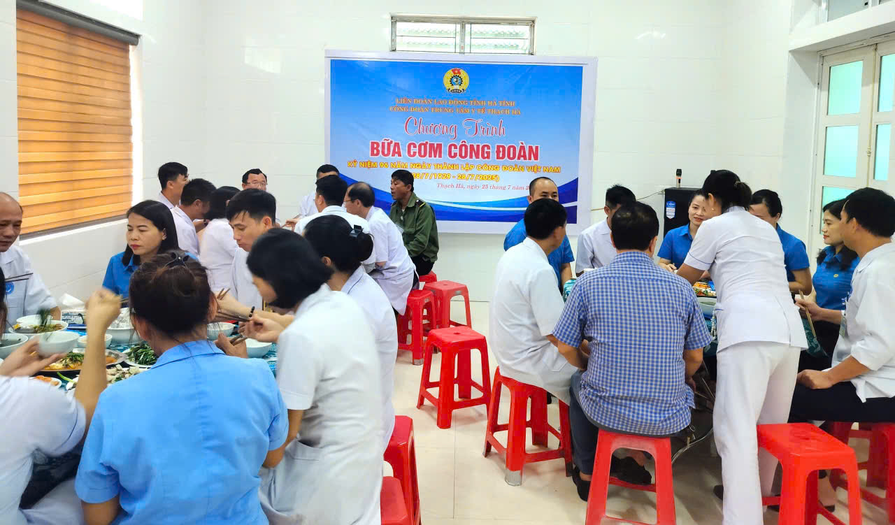 Chương trình "Bữa Cơm Công đoàn" nhân kỷ dịp niệm 96 năm Ngày thành lập Công đoàn Việt Nam tại Trung tâm Y tế Thạch Hà được tổ chức trong không gian ấm cúng tại bếp ăn tập thể của Trung tâm, mỗi suất ăn với giá trị 50.000 đồng, đảm bảo an toàn vệ sinh thực phẩm và chế độ dinh dưỡng.
