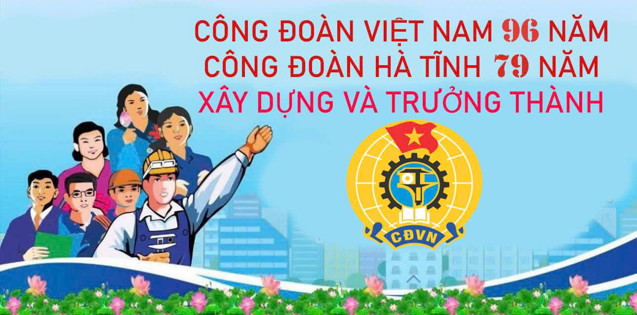 Nhân kỷ niệm 96 năm Ngày thành lập Công đoàn Việt Nam (28/7/1929 - 28/7/2025), Ban Chấp hành Liên đoàn Lao động tỉnh Hà Tĩnh xin gửi tới toàn thể các thế hệ cán bộ Công đoàn, đoàn viên, người lao động Tỉnh nhà những lời chúc mừng tốt đẹp nhất. Chúc các đồng chí cùng gia đình luôn mạnh khoẻ, hạnh phúc, thành công, mong các đồng chí tiếp tục quan tâm xây dựng tổ chức Công đoàn ngày càng vững mạnh, vì lợi ích của đoàn viên, người lao động, vì sự phát triển kinh tế - xã hội tỉnh Hà Tĩnh!