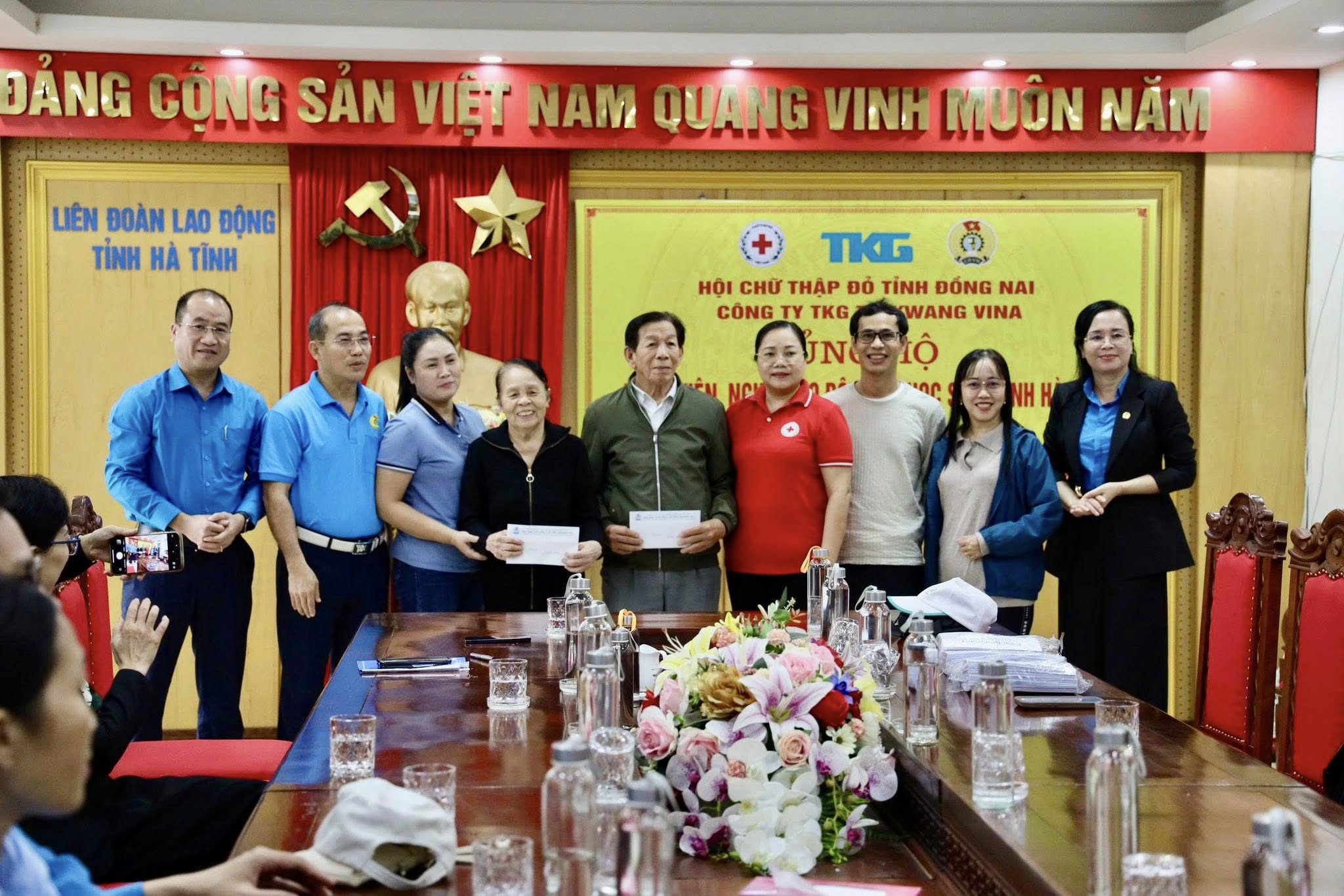 Chiều 27/10, tại Hội trường Liên đoàn Lao động tỉnh Hà Tĩnh, Liên đoàn Lao động tỉnh phối hợp với Hội Chữ thập đỏ tỉnh Đồng Nai và Công ty TNHH TKG Taekwang VINA tổ chức chương trình trao quà an sinh xã hội cho người lao động và học sinh có hoàn cảnh khó khăn bị ảnh hưởng bão số 10.