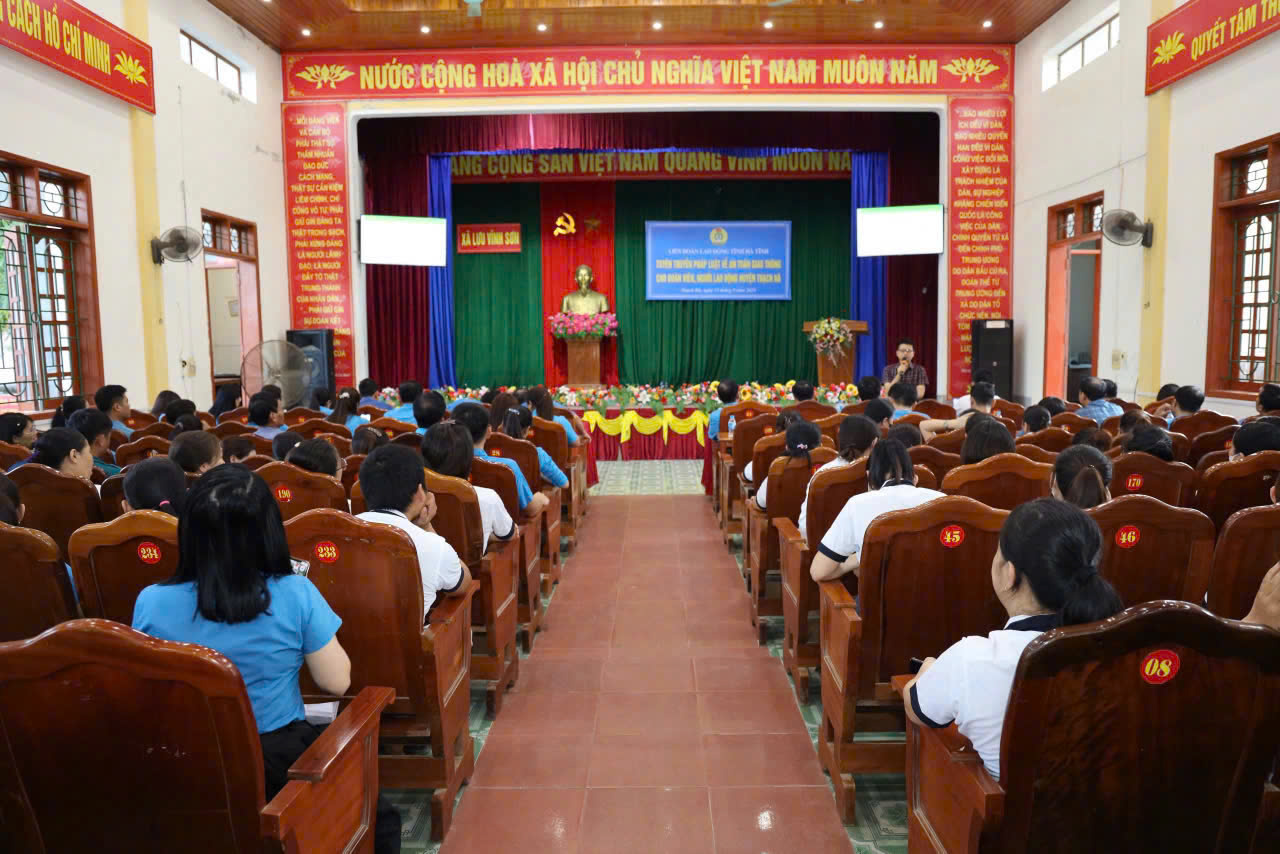 Năm 2024 LĐLĐ tỉnh phối hợp với Sở Tư pháp tuyên truyền về chính sách lao động nữ cho hơn 200 đoàn viên, CNLĐ tại Công ty CP sản xuất đầu tư và thương mại TAAD Hà Tĩnh, phối hợp với Ban ATGT tỉnh tổ chức 03 lớp tập huấn về công tác đảm bảo trật tự ATGT cho hơn 600 đoàn viên, CNLĐ tại thành phố Hà Tĩnh, huyện Thạch Hà, huyện Can Lộc. Các cấp công đoàn phối hợp, lồng ghép tổ chức gần 900 cuộc tuyên truyền, phổ biến các Chỉ thị, Nghị quyết của Đảng, chính sách, pháp luật của Nhà nước, tổ chức Công đoàn với trên 70.000 lượt đoàn viên, CNVCLĐ tham gia; Vận động đoàn viên, CNVCLĐ tích cực tham gia các cuộc thi trực tuyến do Tổng LĐLĐ Việt Nam và các sở, ban, ngành cấp tỉnh tổ chức, Cuộc thi “Công nhân, viên chức, lao động tìm hiểu về công tác an toàn, vệ sinh lao động” với 42.532 lượt thi, Hà Tĩnh xếp thứ 12 toàn quốc; Cuộc thi “Tìm hiểu pháp luật về an toàn giao thông” do Sở Tư pháp Hà Tĩnh tổ chức với số lượng cán bộ, đoàn viên, CNVCLĐ tham gia dự thi là hơn 300 ngàn người. Các CĐCS lồng ghép tổ chức 728 cuộc tuyên truyền chính sách, pháp luật liên quan đến lao động nữ với trên 30.000 lượt người tham gia.