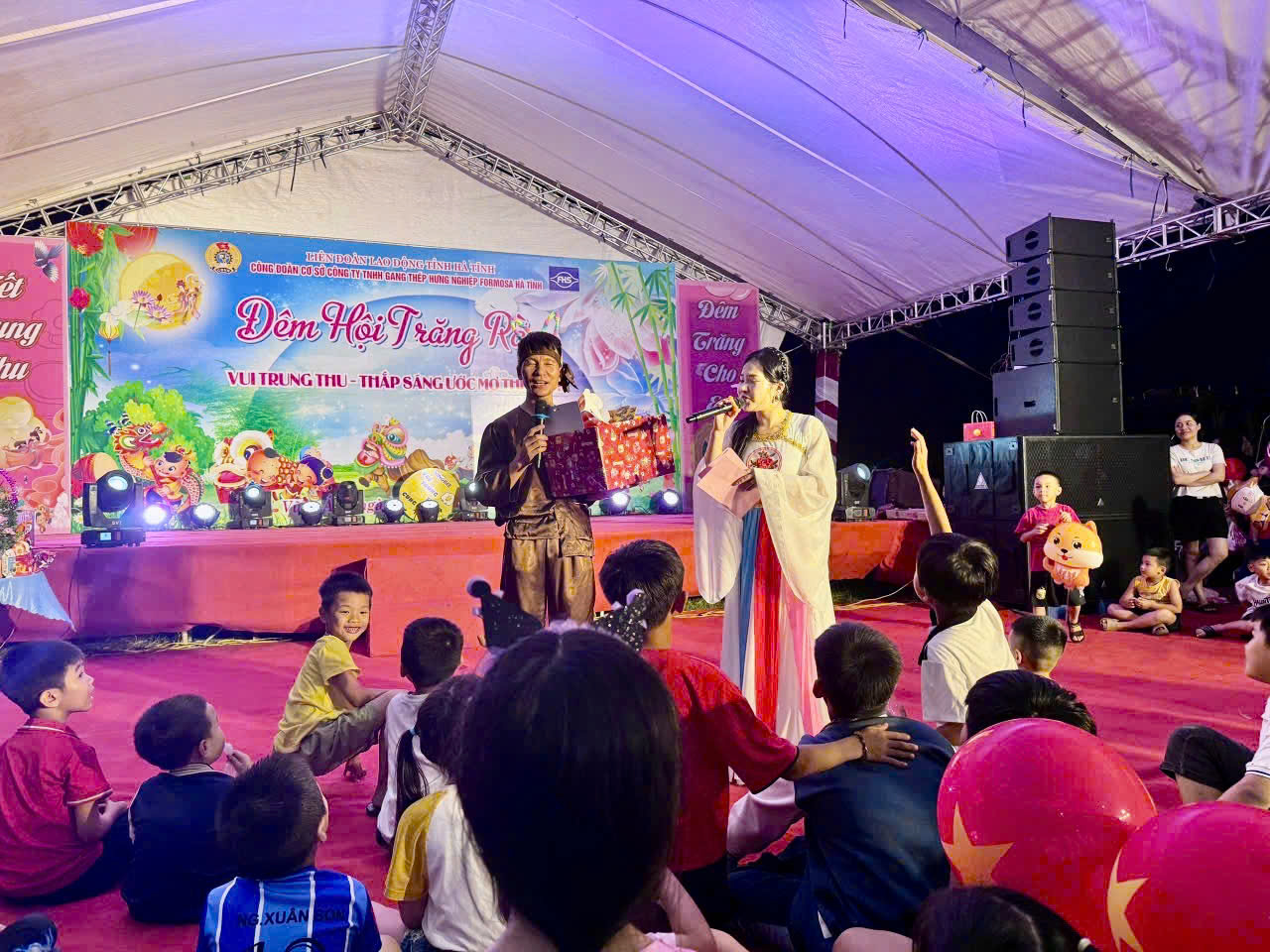 Hòa chung không khí rộn ràng của Tết Trung thu, tối 01/10/2025, Công đoàn cơ sở Công ty TNHH Gang thép Hưng nghiệp Formosa Hà Tĩnh đã tổ chức chương trình “Đêm hội trăng rằm” dành cho con em đoàn viên, công nhân lao động đang làm việc tại đơn vị.