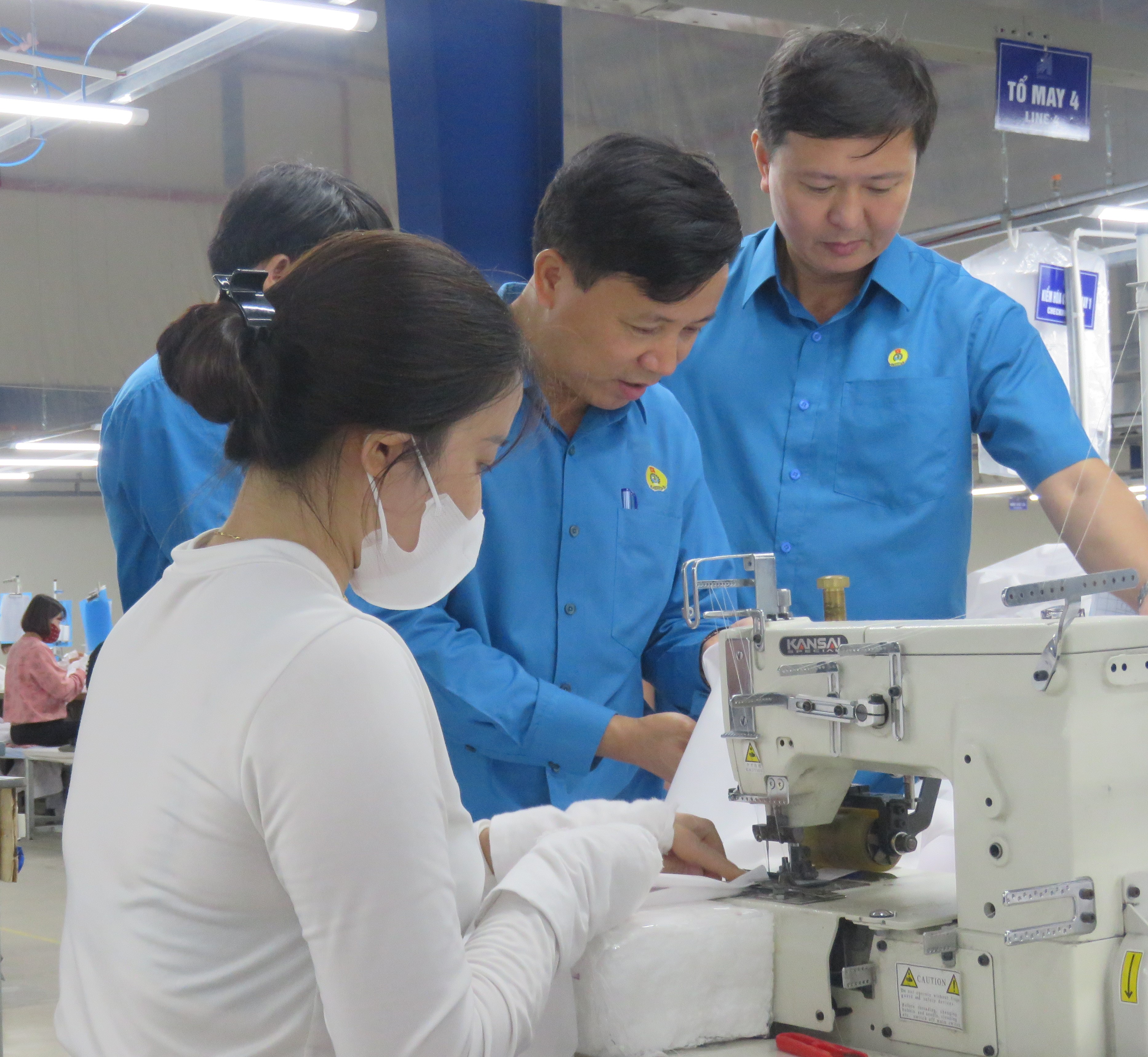 Đ/c Nguyễn Văn Danh - Chủ tịch LĐLĐ Hà Tĩnh (giữa) thăm công nhân Cty May 10