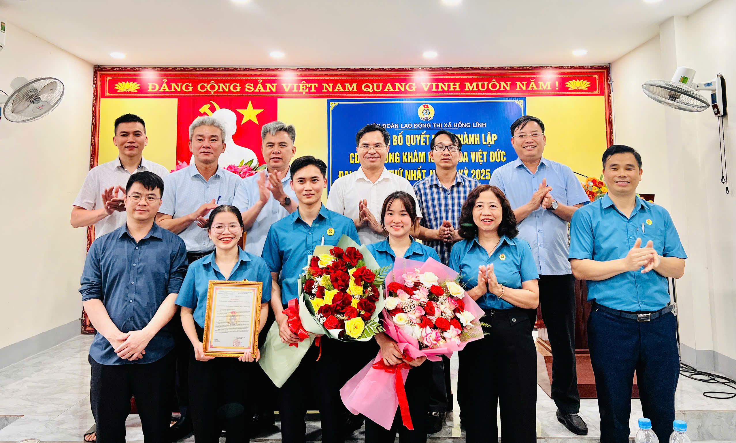 Thực hiện sự chỉ đạo của Liên đoàn Lao động (LĐLĐ) tỉnh Hà Tĩnh về phát triển đoàn viên, thành lập Công đoàn cơ sở (CĐCS) trong các loại hình doanh nghiệp và hưởng ứng các hoạt động Tháng Công nhân năm 2025; chiều 25/4/2025, LĐLĐ thị xã Hồng Lĩnh tổ chức Lễ công bố quyết định thành lập CĐCS Phòng khám Nha khoa Việt Đức và chỉ đạo Đại hội CĐCS lần thứ nhất nhiệm kỳ 2025-2028.