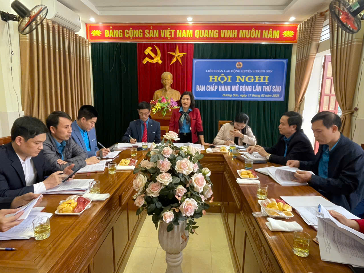 Thực hiện Chương trình công tác năm 2025 của Liên đoàn Lao động huyện; Ngày 17/02/2025 Liên đoàn Lao động huyện tổ chức Hội nghị Ban Chấp hành mở rộng tổng kết 10 năm thực hiện Nghị quyết 6b/NQ-TLĐ ngày 03/8/2015 của Ban Chấp hành Tổng Liên đoàn Lao động Việt Nam, sơ kết 5 năm thực hiện Nghị quyết số 04/NQ-LĐLĐ ngày 18/12/2019 của Ban Thường vụ Liên đoàn Lao động tỉnh Hà Tĩnh về nâng cao chất lượng kiểm tra, giám sát và hoạt động UBKT công đoàn các cấp.