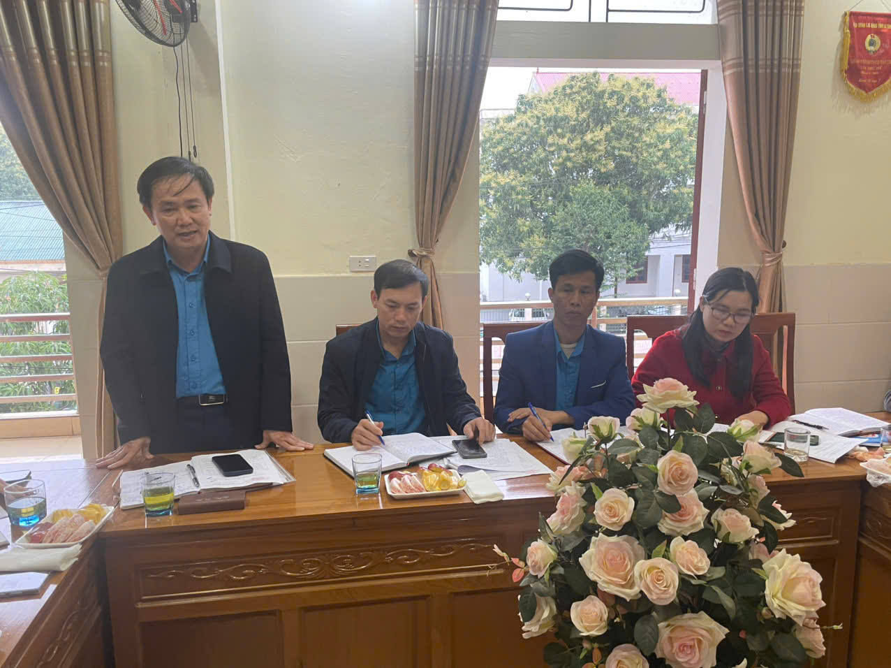 Tặng hoa cho đ/c Trần Anh Nam, đ/c Nguyễn Quốc Khánh trúng cử UV BCH LĐLĐ huyện, NK 2023-2028