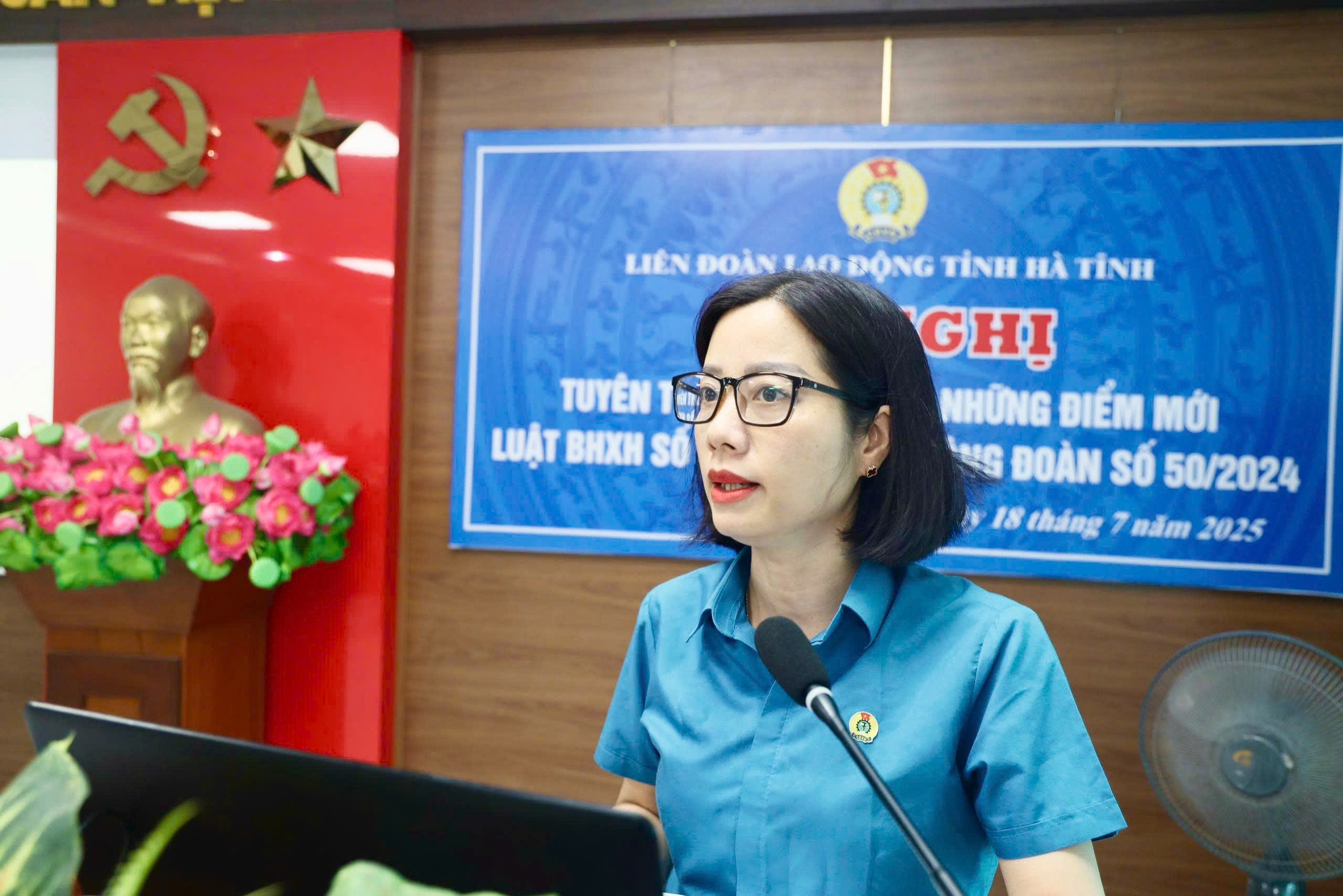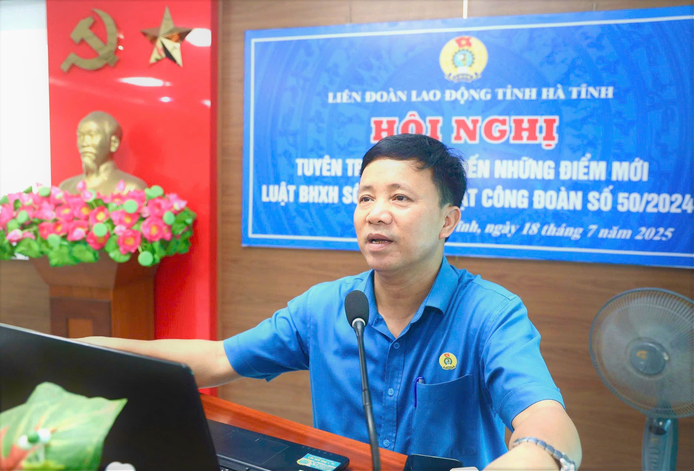 Hướng tới các hoạt động kỷ niệm 96 năm Ngày thành lập Công đoàn Việt Nam (28/7/1929 – 28/7/2025), Chiều ngày 18/7, Liên đoàn Lao động (LĐLĐ) tỉnh tổ chức tuyên truyền, phổ biến những điểm mới của Luật Công đoàn, Luật Bảo hiểm xã hội (BHXH) năm 2024 cho gần 80 đoàn viên, người lao động tại Công ty Cổ phần Dược Hà Tĩnh.