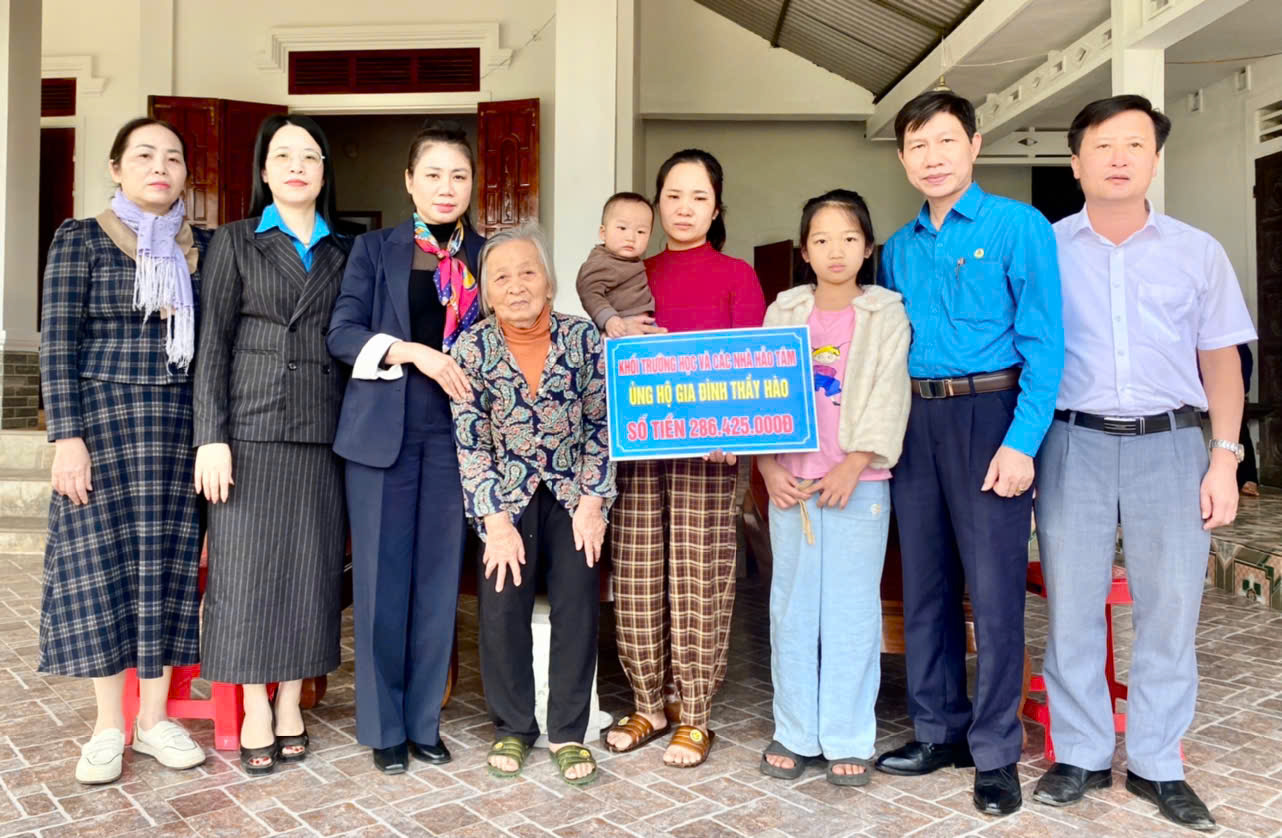 Thấu hiểu được nỗi đau thương, mất mát và những khó khăn chồng chất của gia đình, Ban Thường vụ Liên đoàn Lao động thành phố Hà Tĩnh phối hợp với phòng Giáo dục và Đào tạo đã kêu gọi các Công đoàn cơ sở khối trường học, các nhà hảo tâm quyên góp hỗ trợ cho gia đình thầy giáo Hồ Phi Hào.