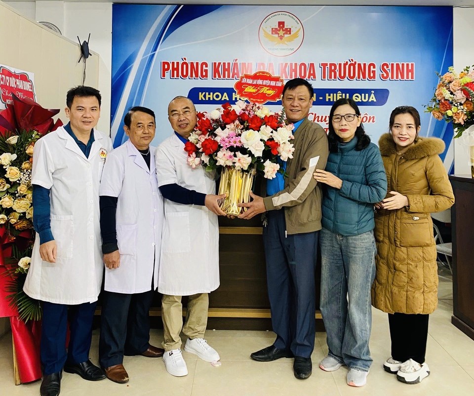 Thường trực LĐLĐ huyện tặng hoa chúc mừng Phòng khám đa khoa Trường Sinh