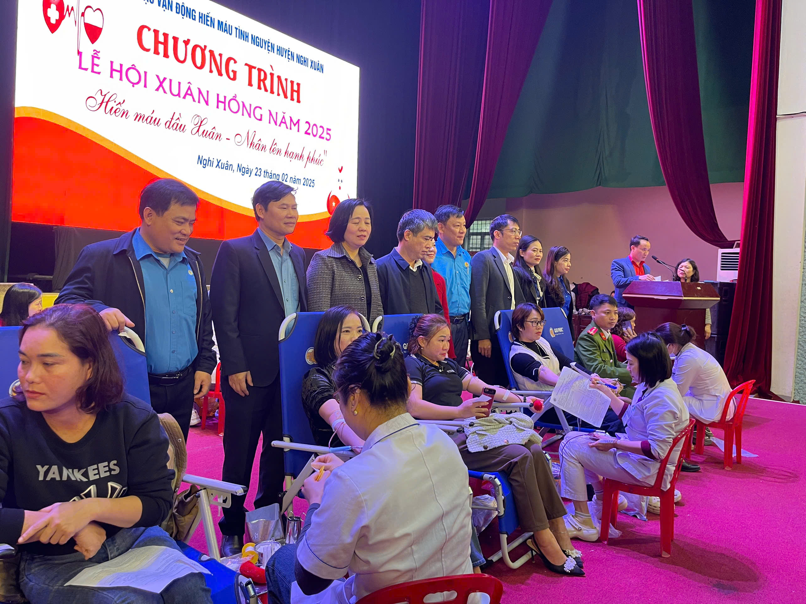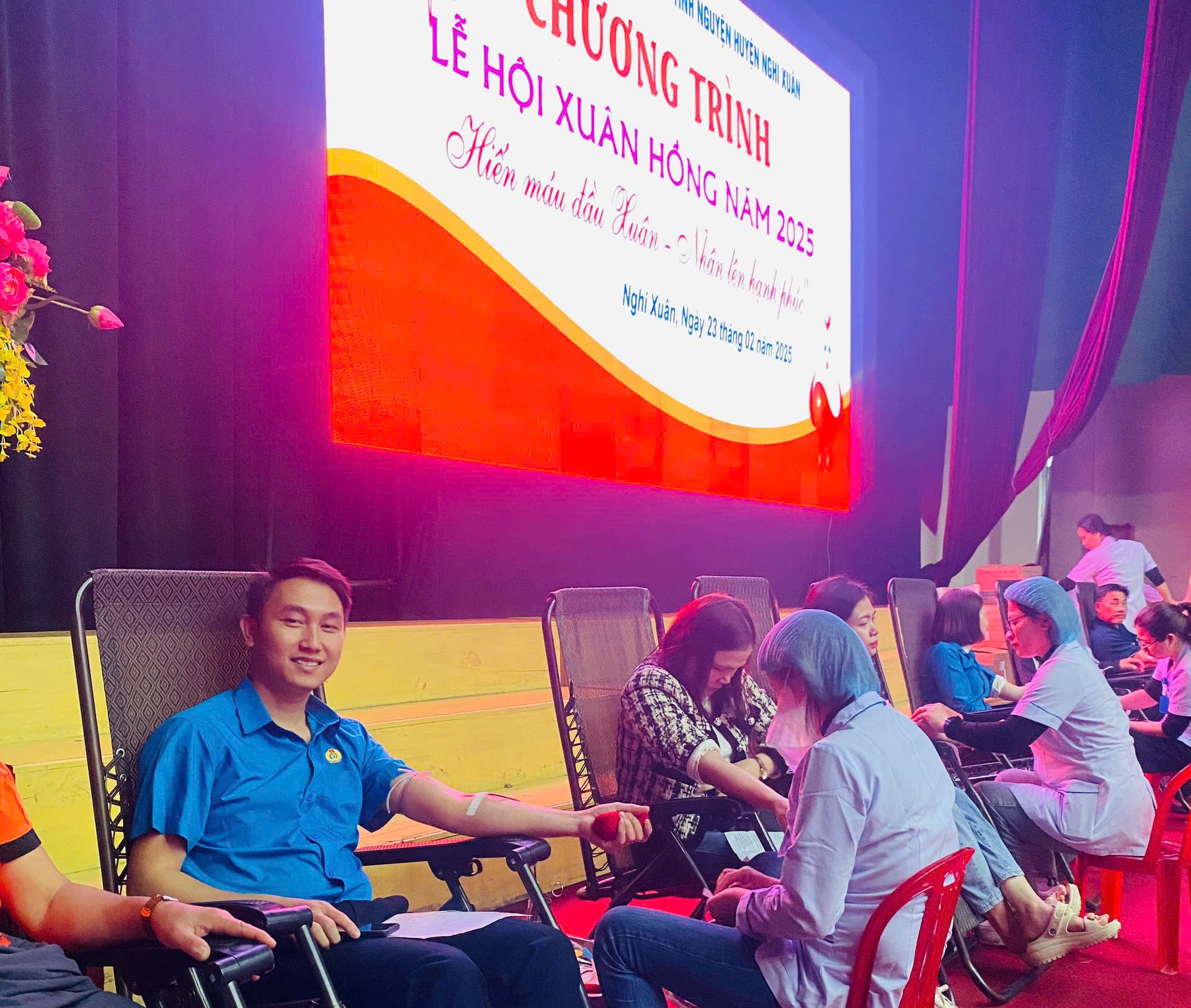 Sáng ngày 23/02/2025, Liên đoàn Lao động huyện Nghi Xuân phối hợp với Ban chỉ đạo vận động hiến máu tình nguyện huyện Nghi Xuân, tổ chức Lễ hội Xuân Hồng năm 2025. Tham dự ngày hội về phía lãnh đạo tỉnh có đồng chí Lê Thị Mai Hoa, Chủ tịch hội chữ thập đỏ tỉnh Hà Tĩnh; đồng chí Nguyễn Xuân Long, Ủy viên Ban Thường vụ, Trưởng Ban Tuyên giáo - Nữ Công LĐLĐ tỉnh; về phía lãnh đạo huyện có đồng chí Trần Quỳnh Thao, Uỷ viên Ban thường vụ, Trưởng Ban Tuyên giáo và Dân vận Huyện uỷ, đồng chí Bùi Việt Hùng, Uỷ viên Ban thường vụ, Phó Chủ tịch UBND huyện, Lãnh đạo các cơ quan, đơn vị UBMTTQ huyện, Liên đoàn Lao động huyện, Huyện đoàn, Hội chữ thập đỏ, trung tâm y tế huyện, hội LHPN huyện.