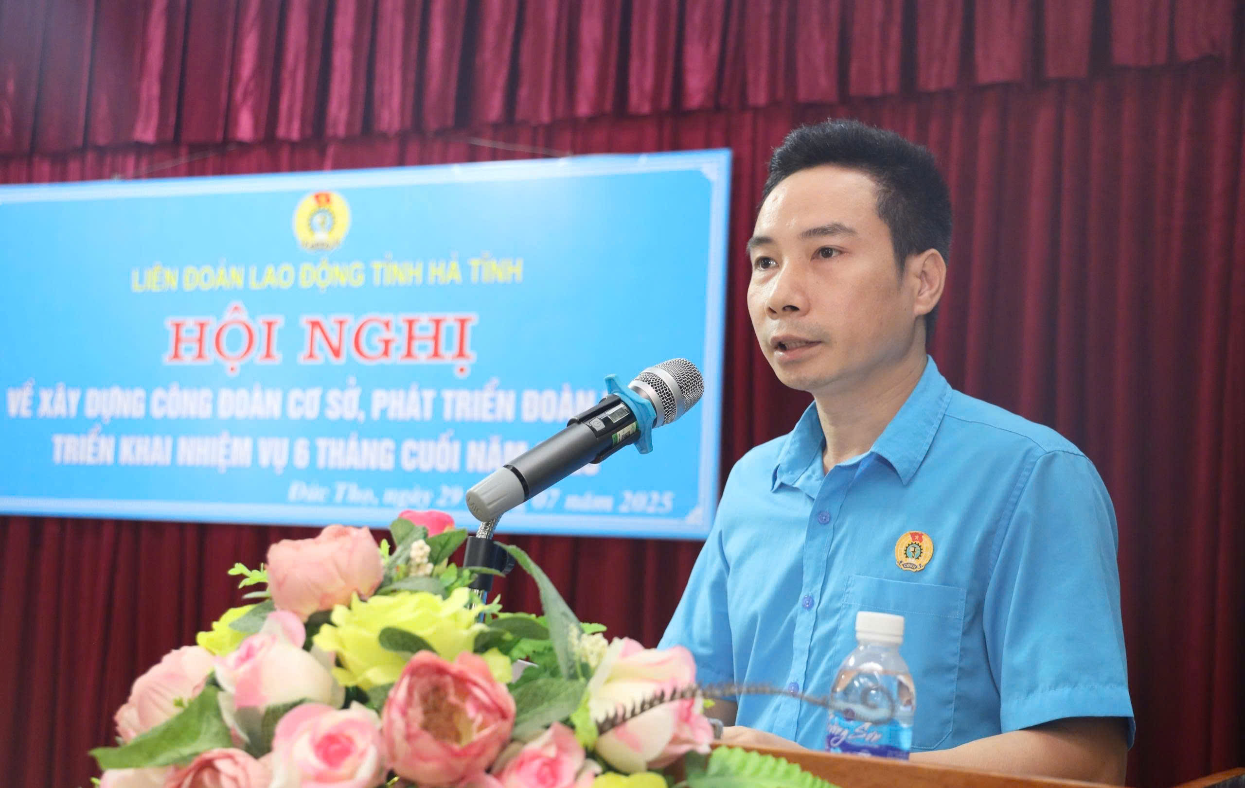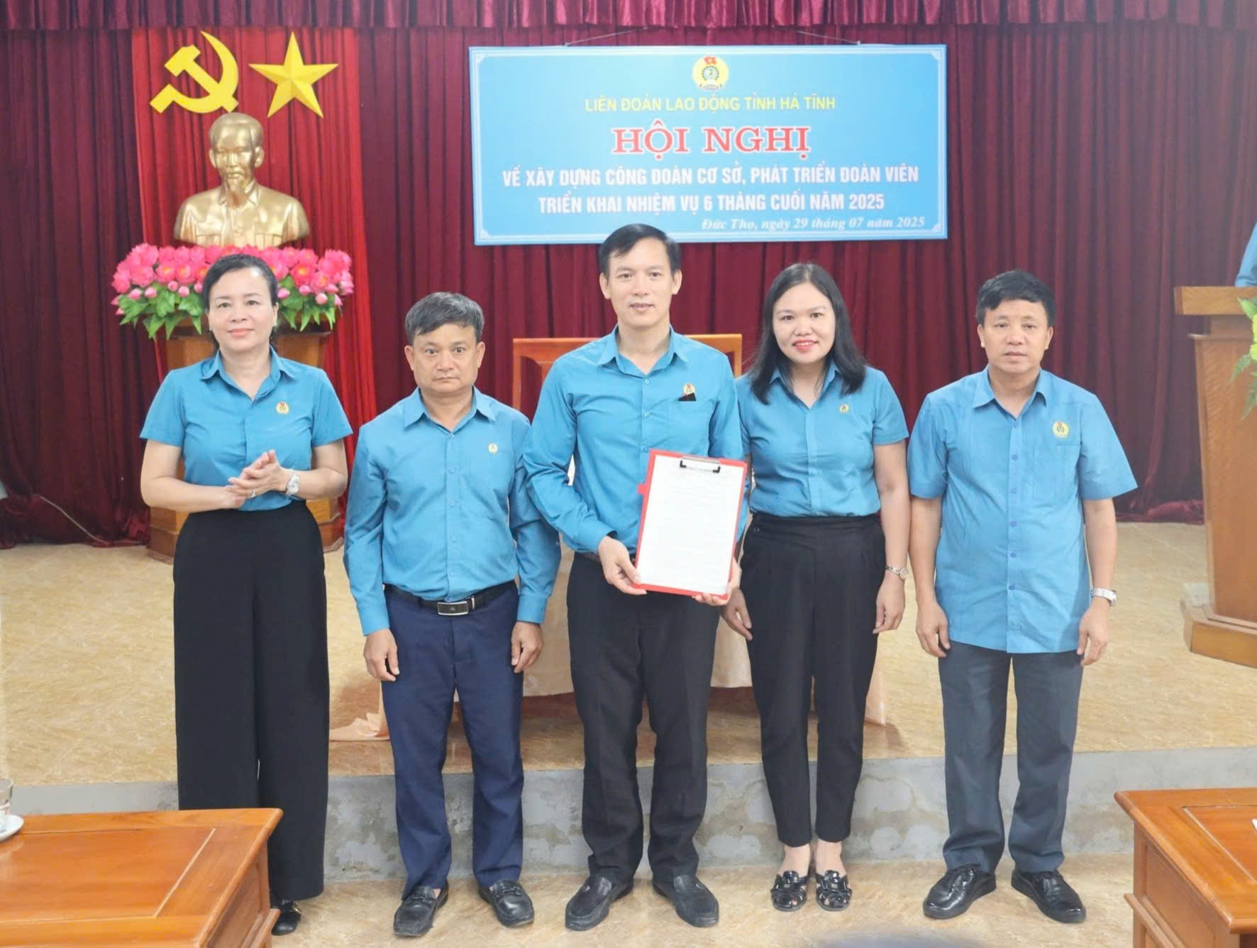 Tại hội nghị, LĐLĐ tỉnh đã báo cáo sơ kết công tác phát triển đoàn viên, thành lập CĐCS trong 6 tháng đầu năm và định hướng nhiệm vụ trọng tâm cho 6 tháng cuối năm. Cụm CĐCS phía Tây được công bố bao gồm 77 công đoàn cơ sở với 5.118 đoàn viên, phân bố rộng khắp tại 24 xã thuộc các huyện cũ gồm Đức Thọ, Hương Sơn, Hương Khê và Vũ Quang. Các cán bộ được phân công phụ trách cụm gồm đồng chí Trần Hậu Hùng, Trần Mạnh Hà và Thái Thị Mùi.