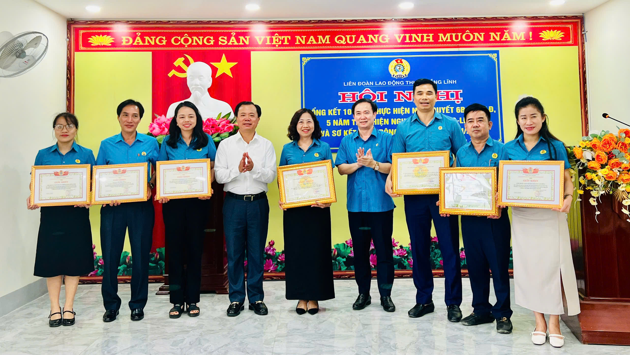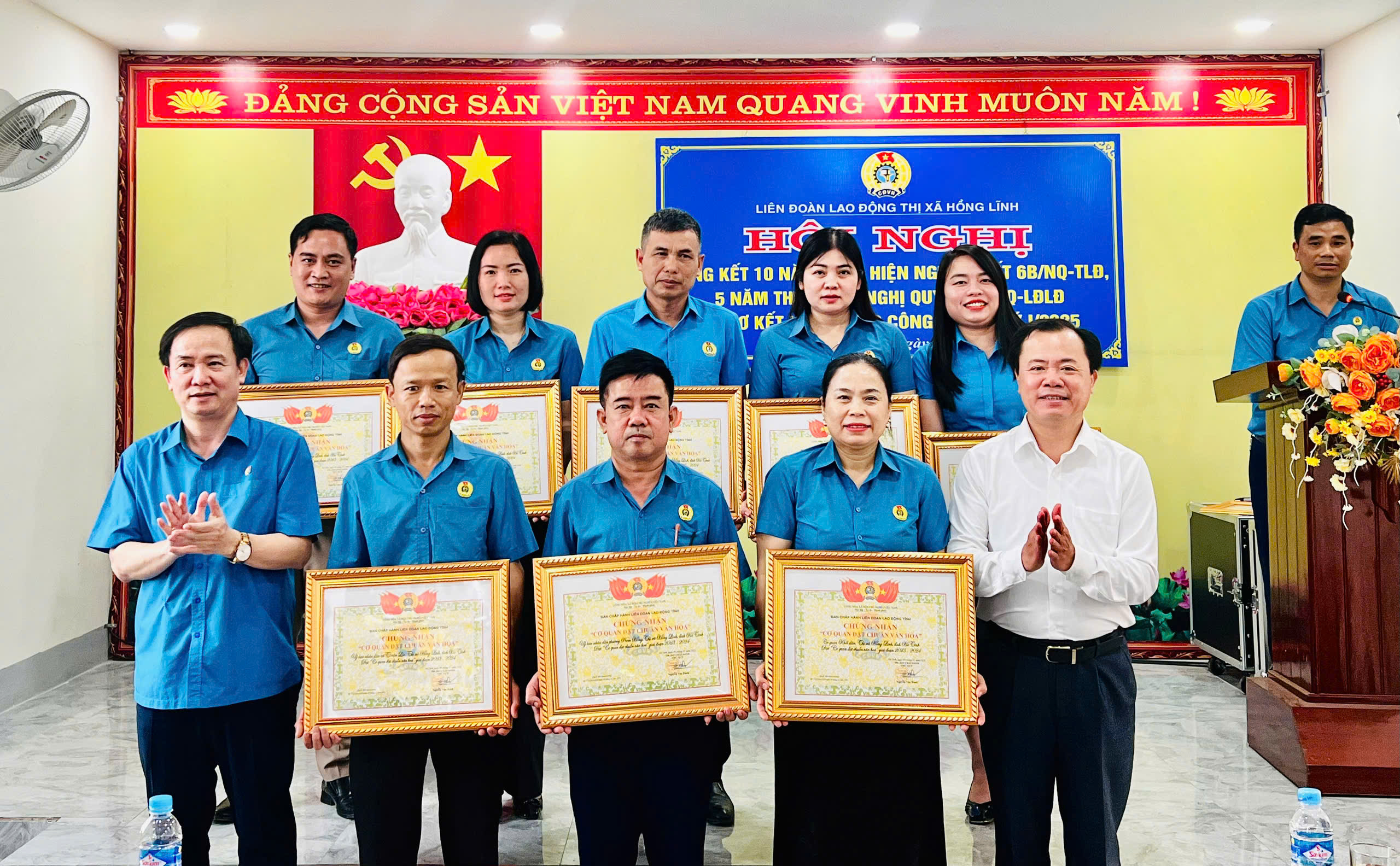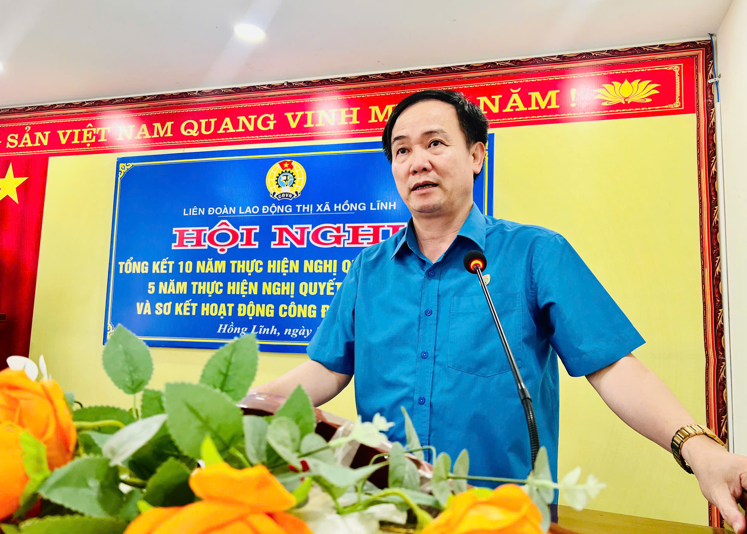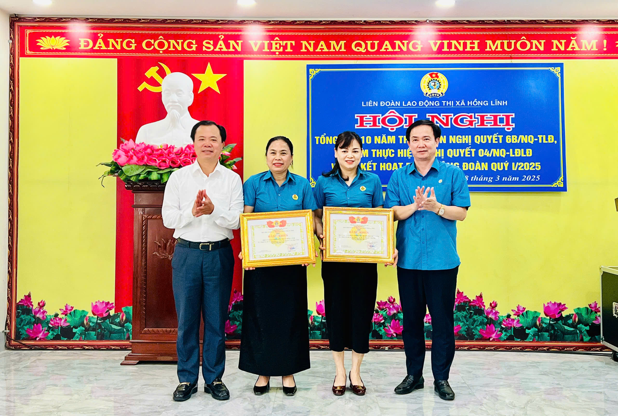 Chiều nay 28/3, Liên đoàn Lao động thị xã Hồng Lĩnh tổ chức Hội nghị tổng kết 10 năm thực hiện Nghị quyết 6b/NQ-TLĐ của Tổng Liên đoàn Lao động (LĐLĐ) Việt Nam (gọi tắt là Nghị quyết 6b), 5 năm thực hiện Nghị quyết số 04/NQ-LĐLĐ ngày 18/12/2019 của Ban Thường vụ LĐLĐ tỉnh về nâng cao chất lượng công tác kiểm tra và hoạt động Ủy ban kiểm tra (UBKT) công đoàn các cấp (gọi tắt là Nghị quyết 04) và sơ kết hoạt động Công đoàn quý I, triển khai các hoạt động Tháng Công nhân năm 2025.