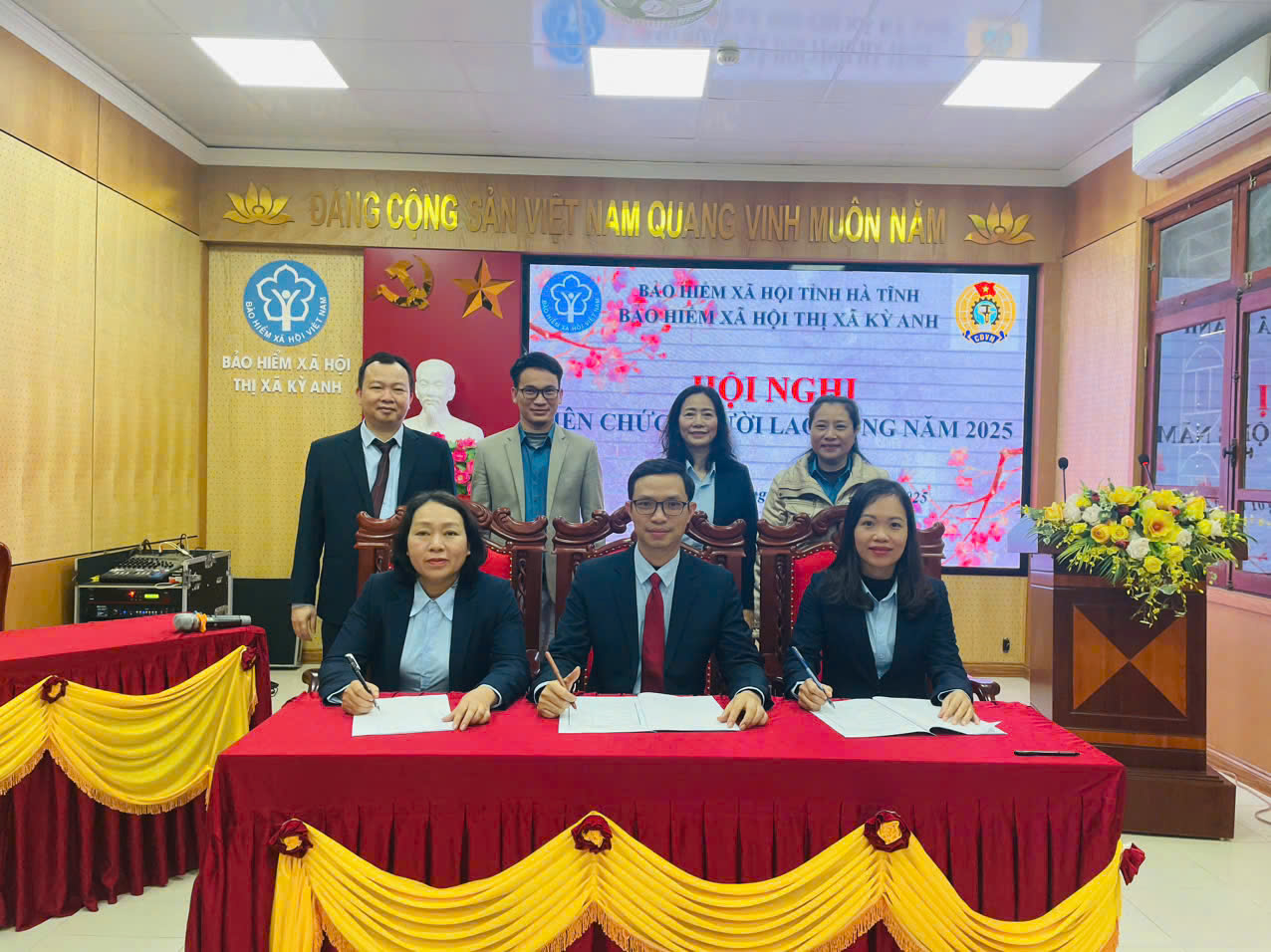 Lễ ký kết giao ước thi đua tại Hội nghị Viên chức, NLĐ Cơ quan Bảo hiểm xã hội thị xã Kỳ Anh