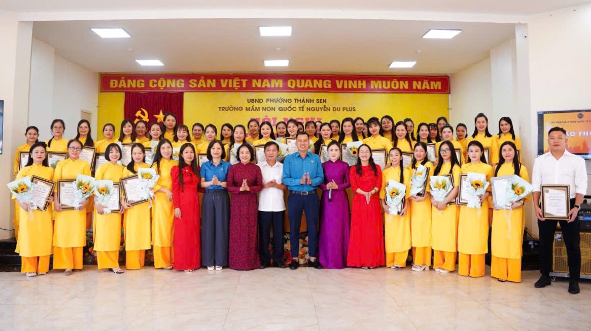 Sáng ngày 19/9/2025, CĐCS Trường Mầm non Quốc tế Nguyễn Du Plus đã phối hợp tổ chức Hội nghị Người lao động năm 2025. Tới dự và chỉ đạo Hội nghị có đồng chí Nguyễn Đức Thạch, Ủy viên Ban Thường vụ LĐLĐ tỉnh, Phó ban Công đoàn Khu Kinh tế; Nguyễn Thị Bích Hảo, Giám đốc Công ty TNHH Tâm Sinh Lộc, chủ đầu tư; Trần Thị Diệu Huyền - Hiệu trưởng Nhà trường và đồng chí Nguyễn Thị Hạnh - Chủ tịch Công đoàn. Tham dự Hội nghị có 119 cán bộ, giáo viên và người lao động (đạt 100%), trong đó nữ 105 người, đảng viên 23 người.