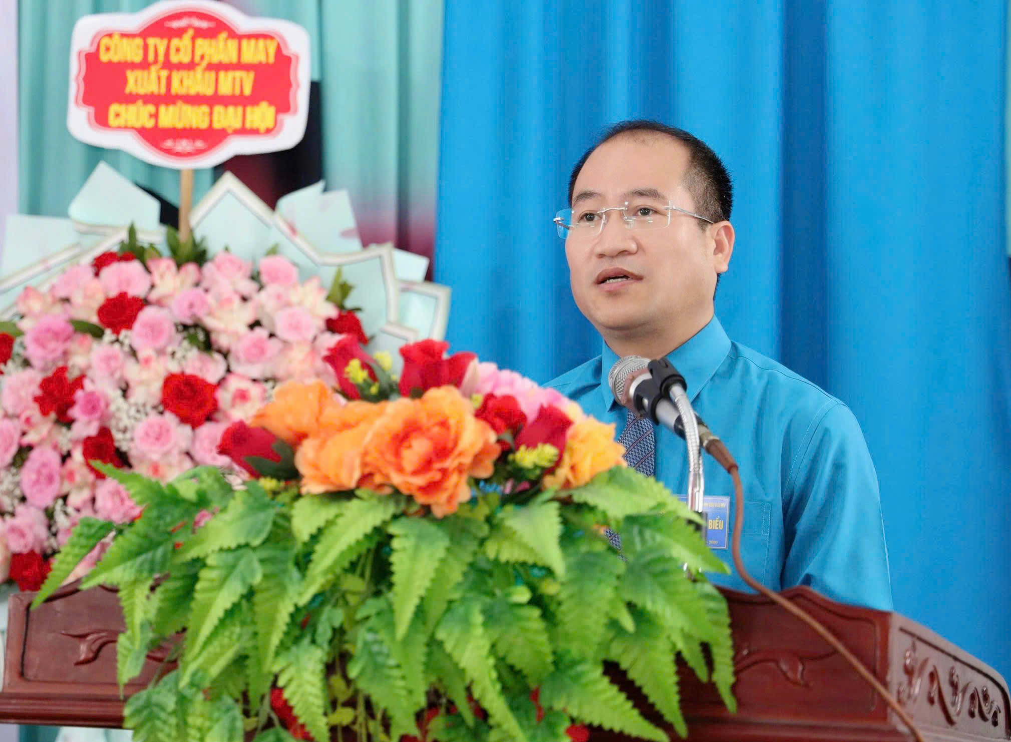 Phát biểu chỉ đạo Đại hội, đồng chí Nguyễn Thế Hoàn - Chủ tịch LĐLĐ tỉnh ghi nhận, biểu dương những kết quả nổi bật của Công đoàn cơ sở Công ty CP May Xuất khẩu MTV, đồng thời đề nghị nhiệm kỳ tới Công đoàn cơ sở tiếp tục đổi mới nội dung, phương thức hoạt động, phát huy vai trò đại diện, chăm lo toàn diện cho đoàn viên, người lao động, gắn với nhiệm vụ phát triển bền vững của doanh nghiệp.
