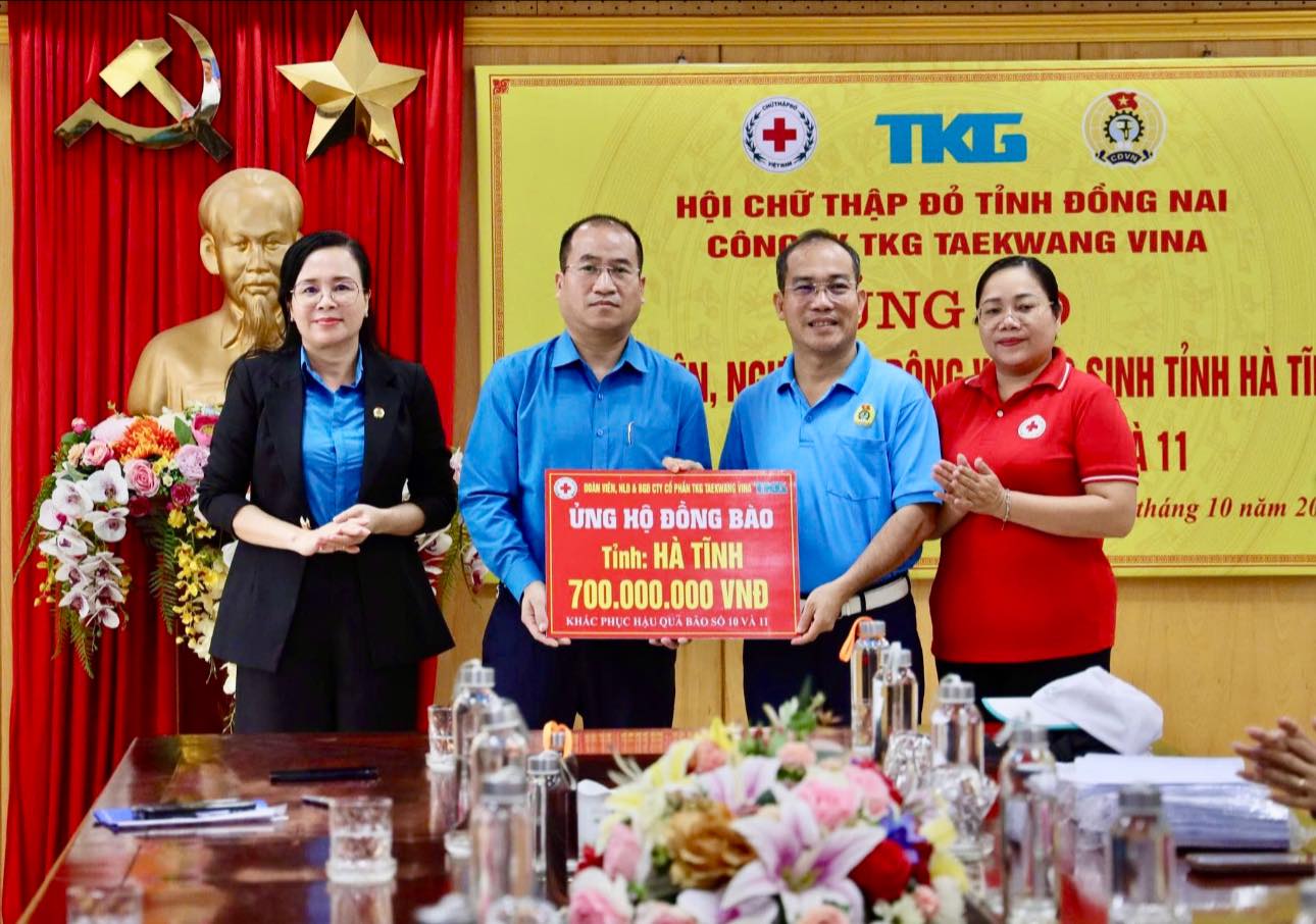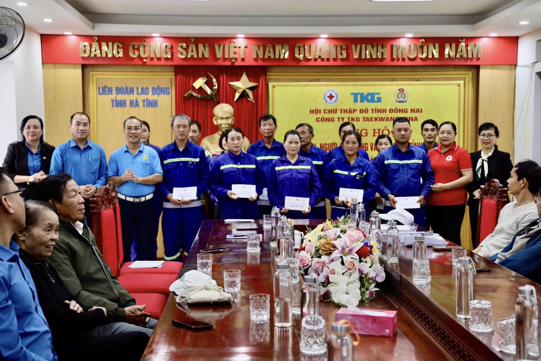 Chiều 27/10, tại Hội trường Liên đoàn Lao động tỉnh Hà Tĩnh, Liên đoàn Lao động tỉnh phối hợp với Hội Chữ thập đỏ tỉnh Đồng Nai và Công ty TNHH TKG Taekwang VINA tổ chức chương trình trao quà an sinh xã hội cho người lao động và học sinh có hoàn cảnh khó khăn bị ảnh hưởng bão số 10.