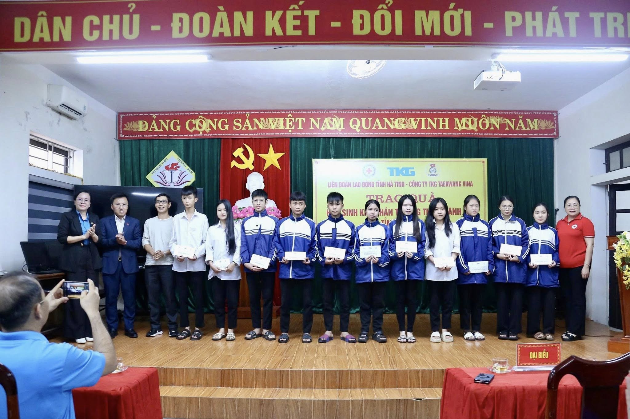 Sau đó, đại diện Công ty Taekwang VINA cùng Liên đoàn Lao động tỉnh đã đến Trường THPT Thành Sen (Phường Thành Sen) và Trường THCS Bình An Thịnh (xã Lộc Hà) trao 100 suất quà cho học sinh có hoàn cảnh khó khăn (mỗi trường 50 suất quà).