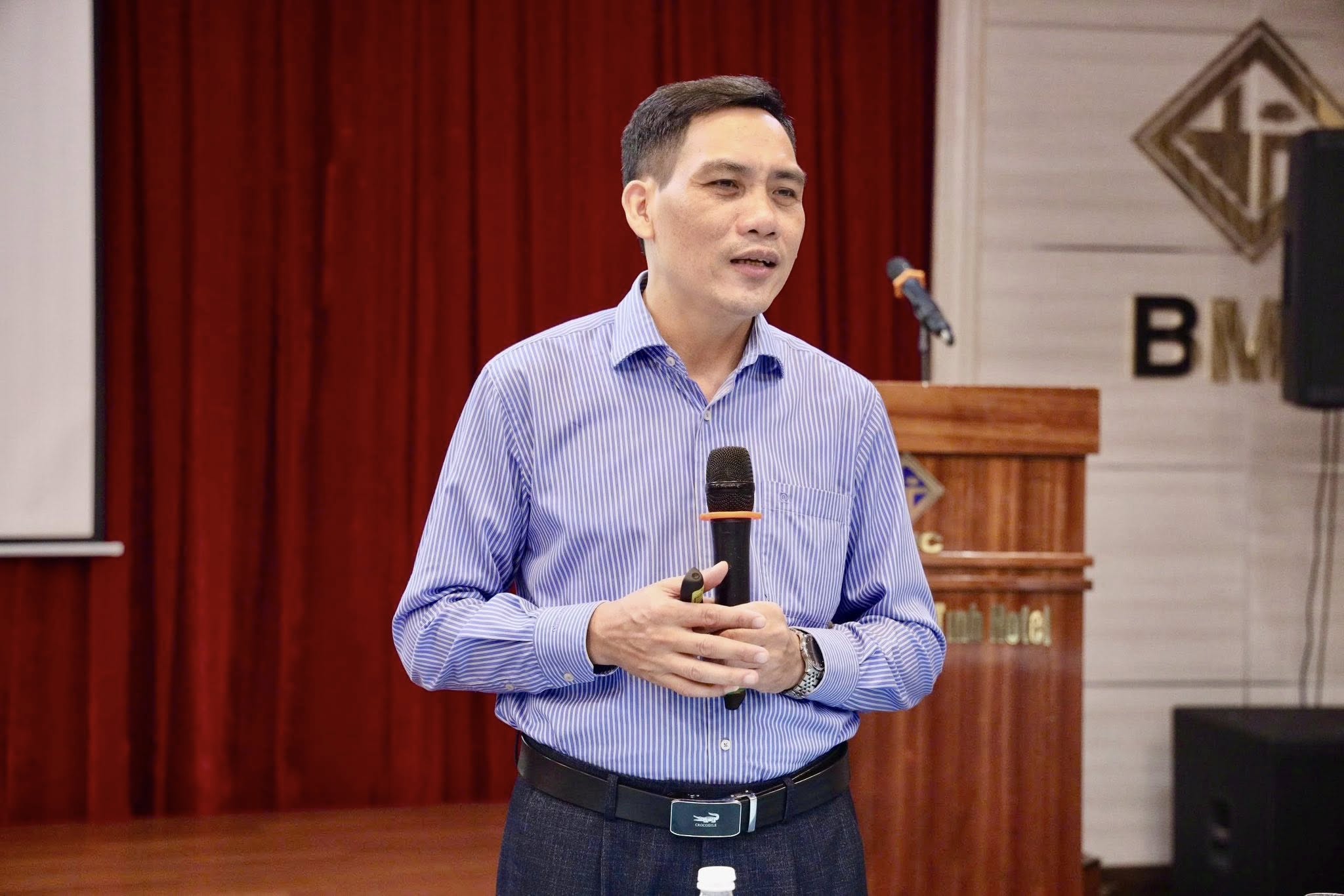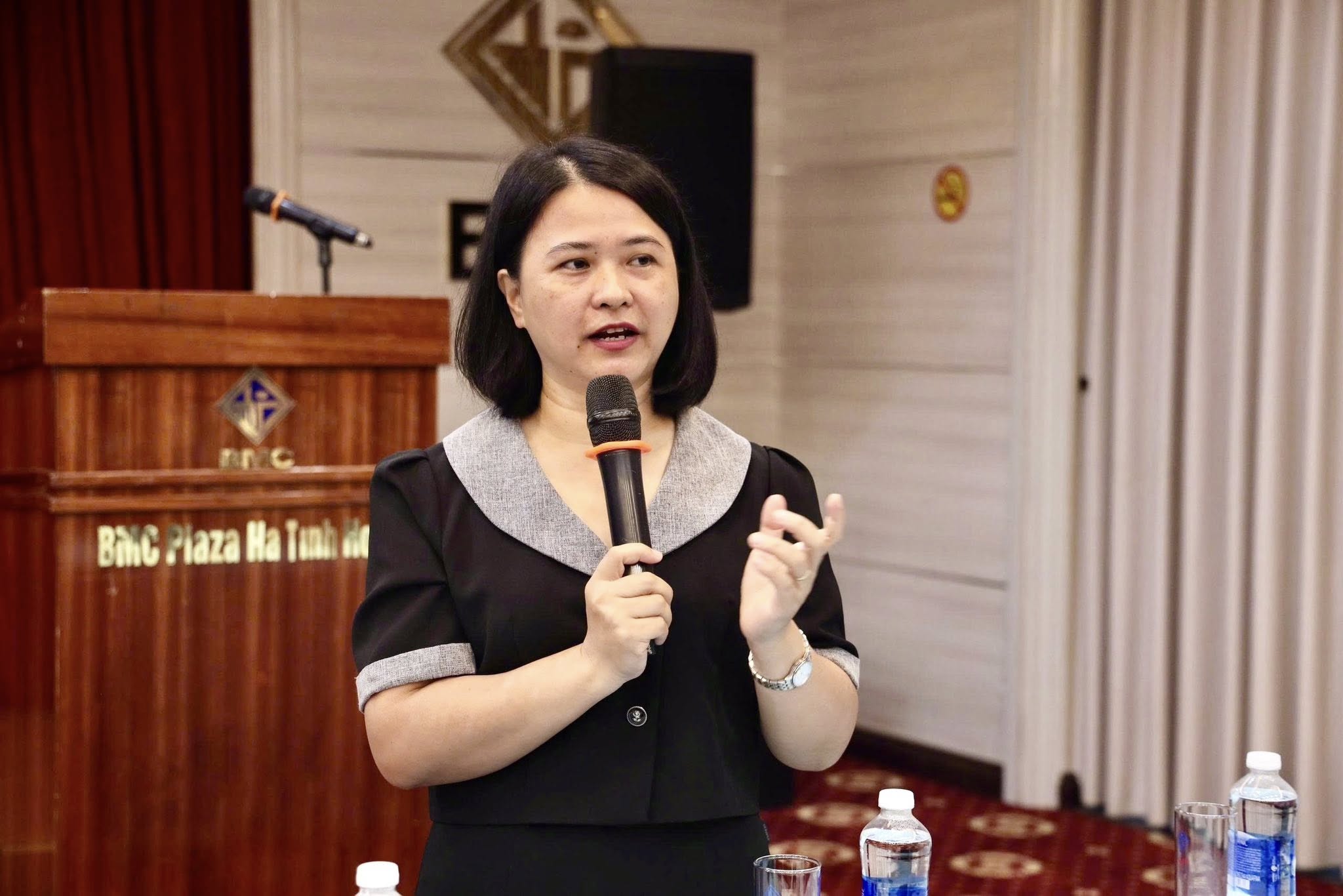 ThS. Đỗ Việt Đức – Ban Quan hệ Lao động, Tổng LĐLĐ Việt Nam chia sẻ kiến thức tại lớp học. Ảnh: Công đoàn Hà Tĩnh